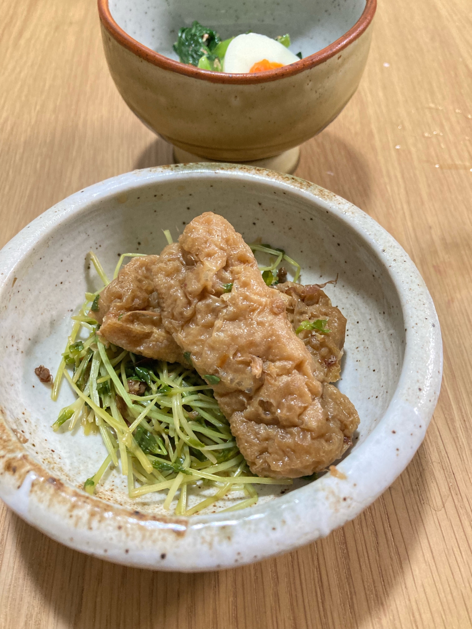 豆苗とおあげさんの簡単煮物 レシピ 作り方 By 料理とお酒と犬がすき 楽天レシピ